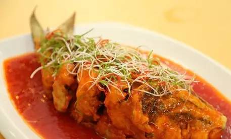 2、油的用量比较大,否则鱼容易炸散架。然后再用蕃茄酱和白醋、糖带少量的盐、勾芡汁,浇在炸好的鱼身上。