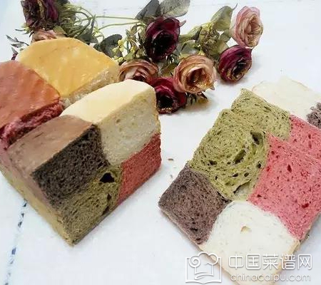 蔬菜融入面包,整合出2015年最新高颜值食物。看到这款四色面包,不禁要为美食制作者的巧思鼓掌。
