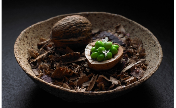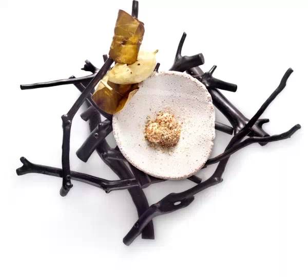 交错的黑色树枝,粗糙破损的瓷器餐具,呼应着盘中看似简单却工序复杂的料理,我们吃的不是食物,是情怀!