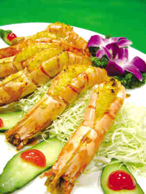 特色:烤出蒜蓉及黄油的香味和大虾鲜味,营养极高。常见油焖大虾等传统吃法,用蒜蓉烤大虾可谓新吃法,增添虾肉的原味并除去了腥味,回味有浓郁的香味。