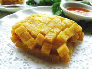 特色:外焦里嫩,仿西式鱼排烹调方法,改面包渣为馒头,易于造型,口感更为香脆。