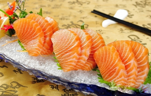 3. 三文鱼生鱼片 + 黑皮诺(Pinot Noir)