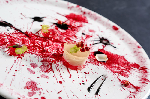 2、取出,在烤盘上再置疑空烤盘,上加重物,将鹅肝酱由上而下压平,待冷却后放入冰箱冷冻,食用时切片即成。