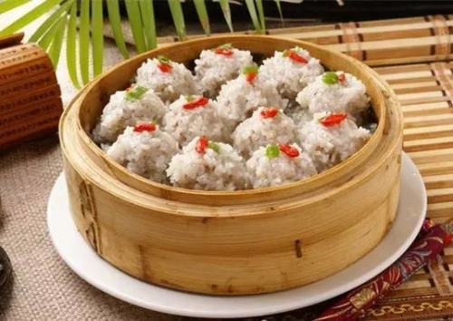 6.做好的珍珠丸子生坯放入开水锅内,大火蒸10分钟即可。