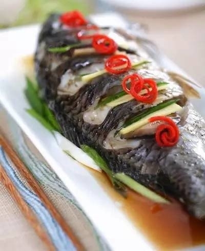 原料:活鲤鱼1条、盐1茶匙、胡椒粉1/2茶匙、料酒2汤匙、姜4片、干辣椒1个、蒸鱼豉油2汤匙、香葱适量。