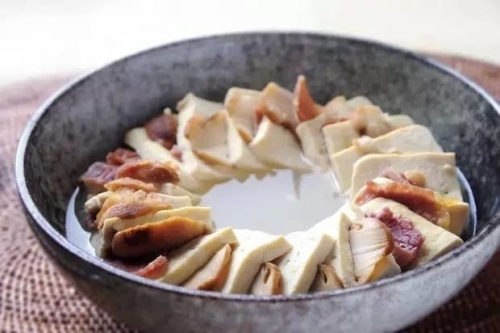 15.蒸熟以后倒扣于盘内,一盘亮澄澄,油汪汪,糯粘而不腻的烧白(扣肉)就制作完成了。