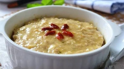 6.摆入盛有西兰花的盘中,上面可再装饰上枸杞子。
