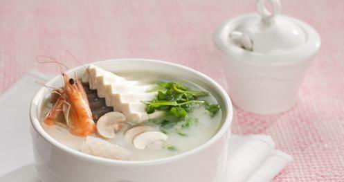 材料:三碗水(750毫升),豆腐1盒,虾,鱿鱼,蘑菇,豆苗,魔芋,鱼味浓汤宝1块