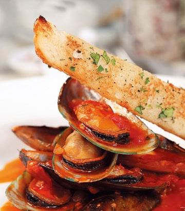 菜式特点灵感来自于海上乘风破浪的帆船,看着饱满的海虹,仿佛还能嗅到大海的气息。口味浓郁,用番茄汁作为主要的蘸汁,蒜香的烤面包条更是在口味上加入对比的感觉,是在家很容易做得出彩的一道菜。