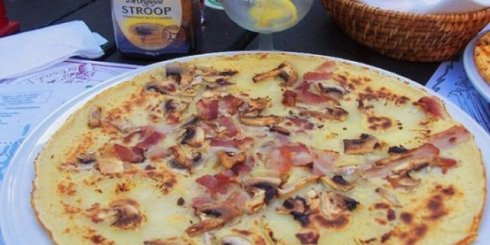 Pancake( 薄煎饼)可谓是风靡全世界的小吃,在荷兰也不例外。荷兰的大街小巷到处都可以看到专卖pancake的餐馆。荷兰更有着自己独特的pancake配方。这里介绍一款深受广大荷兰人民欢迎的传统pancake配方:苹果烤肉煎饼。