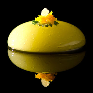 柚子球在你嘴里爆裂一刻,释放出清新的柚子,橘子皮和香菜的味道。柚子和香菜配比是完美的,因为他们有相似的分子化合物。再用香菜叶,橙皮和蹦蹦糖(增加了额外动感)。