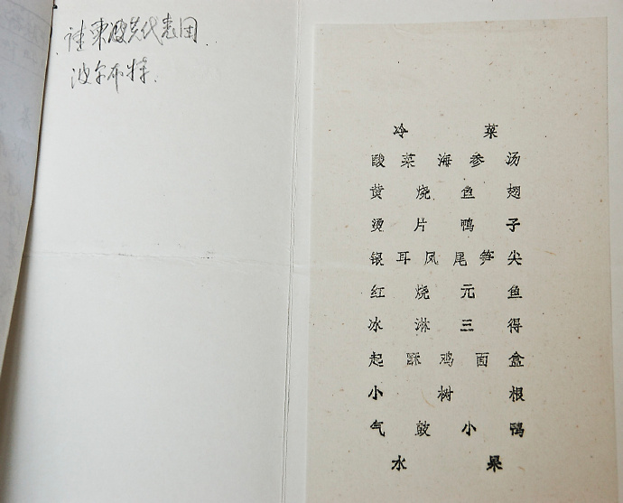 1985年6月4日下午6点半胡耀邦在中南海宴会厅的202室宴请波尔布特率领的柬埔寨红色高棉(柬埔寨共产党)代表团,这一个菜单揭示了波尔布特1985年曾经率团秘密访华。