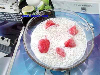 先将鲜奶加糖煮热,再放入去籽去皮切成大粒的木瓜和雪梨,煮30分钟即成,鲜奶+木瓜=双重美白效果,配以润心的雪梨,真是由外靓到内。