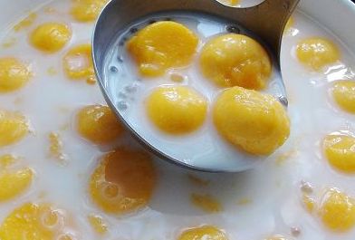热食尤其暖胃,益气血,芒果的清甜可口夹着浓郁椰香、能保血暖胃的黑糯米同吃,烟韧有度,口感极佳。由于芒果肉较湿毒,煮此款糖水时可先用芒果核干煲水,捞起后再加入黑糯米,待煮烂后,才放芒果肉,最后加上椰汁,这样就更健康有益。