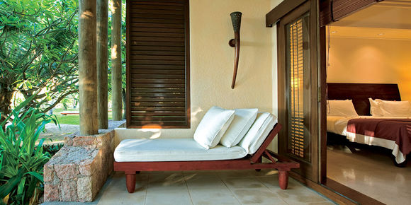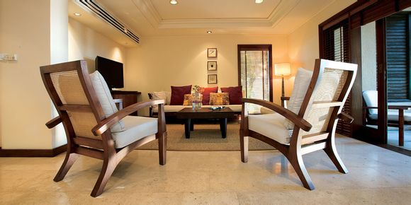 郁郁葱葱的热带植物环绕,坐落在半山腰风景怡人,可俯瞰到印度洋温暖海水细心呵护的柔软沙滩。绿宝石色的海水与酒店周边清新的热带园林完美融合,在此入住的宾客还能够免费享受18洞锦标赛高尔夫球场,享受海岸挥杆的乐趣。