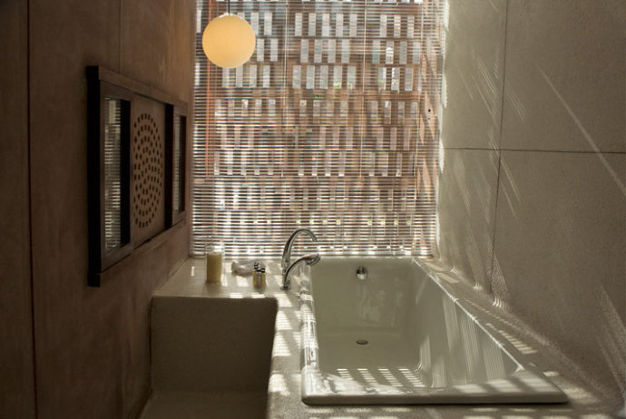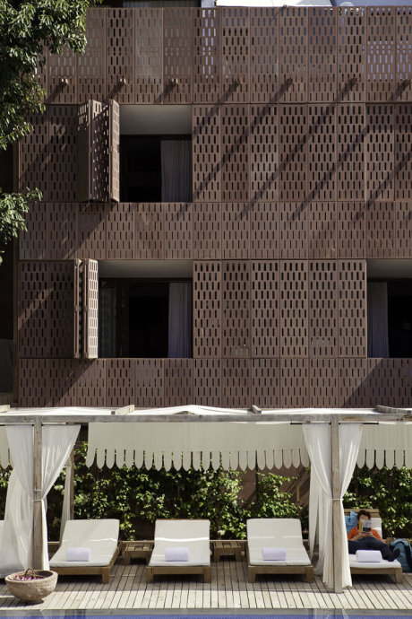 旅店具有39间客房,以梅兰加尔古堡地下室为据点举行打造,该修建布局获2011天下修建节的“年度假日修建奖占地1.5英亩,包含三个环绕着中心庭院漫衍的18世纪布局体量。每座修建所占空间较小,漫衍着泳池、用餐区、spa和开放式安息区等大众空间。经由过程应用该地区传统由来已久的双皮层构体,石格子构造有助于修建物的天然冷却并包管了隐私。
