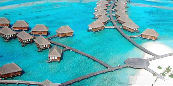 这是一个漂浮在水上的蜜月天堂,面朝湛蓝的海水,手执一杯香槟,这里是与爱人耳鬓厮磨的好地方。身着比基尼和爱人在湛蓝的水中淋漓畅快地游泳嬉戏; 或是从图书馆借本好书,躺在水中的吊床上,任鱼群在身边游来游去;酒廊中覆盖了无线网络,你可以随时在微信的朋友圈里秀甜蜜合照……