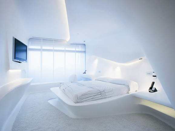 西班牙建筑师Felipe Saez de Gordoa评价它说:“这是一座乌托邦饭店,一尊自由女神像,也是一本打开的书。”而对于酒店里的床,这里也有足够多的亮点,其中最经典的莫过于一张悬挂的床,纯白色的房间设计充满了现代感,如果你们是一对年轻的爱人,那么你们一定会疯狂地爱上它。