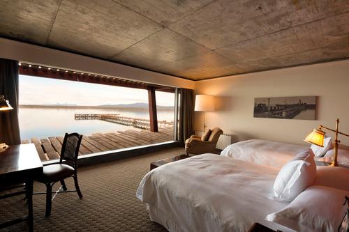 速写:这里曾是一个对羊进行加工的厂房,因而客房呈现出工业化迹象的冷调时尚,一窗之隔的是著名的巴塔哥尼亚峡湾(窗户可是大大的落地窗)。这个三层酒店里,所有的54间客房,外加三间套房都能让你近距离感受峡湾。走下码头,就能更亲密地接触大自然的美景。不过,半倚在摇椅上就能做到的事情,何需费事出门呢?
