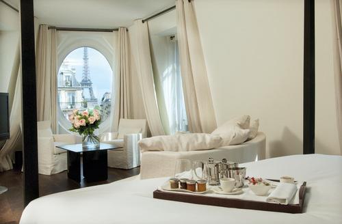 速写:隐匿在法国的第十六郡,这个通体设计彰显着运动时尚的饭店有48间客房和一个慵懒的沙发酒吧(Lounge Bar)。来杯葡萄酒或是下午茶,坐在壁炉边的你就肆意地欣赏埃菲尔铁塔的倩影。回到房间或者是埃菲尔套房内,爬上床的你同样能与埃菲尔深情对望,也许还可以来杯咖啡哦。当夜幕降临,照亮了夜空的璀璨埃菲尔将装点你的梦。