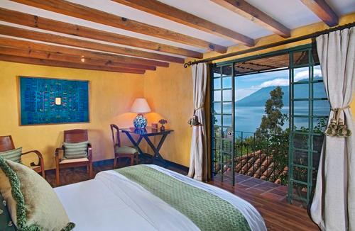 速写:迷人的亚提特兰湖(Lake Atitlan)地区以织工、商贩和工匠闻名。然而,同名的亚提特兰湖才真正是这个地区的瑰宝。卡萨帕洛波别墅有九间客房,多数房间里都可以俯瞰到亚提特兰湖以及海拔高达3048m的火山顶。不想待在房间又不想放过美景的你还在纠结中吗?来别墅的餐厅来杯日落鸡尾酒吧,这里的风光同样好得很。