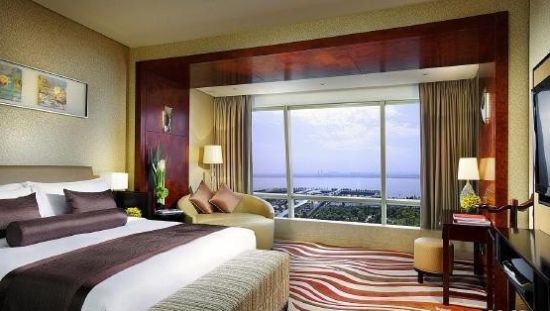 酒店以金色为主色调,整个建筑如同旭日东升,与新月形的杭州大剧院形成“日月同辉”的绚烂美景。其匠心独具的设计和美轮美奂的建筑,使酒店成为杭州的又一新地标。每一间豪华客房拥有明亮的观景落地大窗,任宾客饱览钱塘江水和城市美景。
