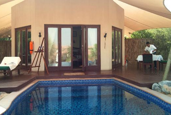 这家酒店不位于市中心,而位于郊区的茫茫沙漠之中,可谓是沙漠中的壮美绿洲,42间独栋别墅,每间私人别墅都配备泳池,如果不够畅爽还有大型的户外公共泳池。除了景色,骑骆驼和滑沙是绝对不可错过的,哪怕是柔弱的女孩也能在这种刺激的项目中因过瘾而尖叫。