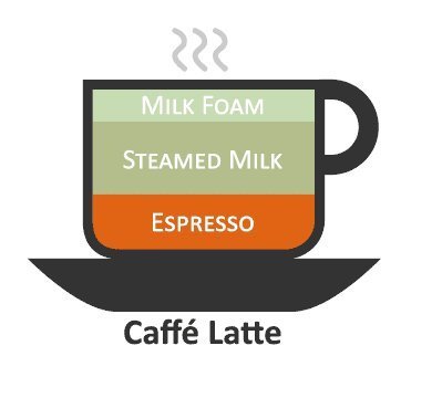 1份浓缩咖啡+0.75份热牛奶+0.75份鲜奶油+0.5份奶泡