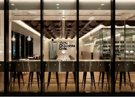 日本明治(Meiji)旗下的 100% Chocolate Cafe,店内不仅提供巧克力为主的饮品,此外还有咖啡、茶、果汁以及巧克力相关的甜点。世界各国可可豆调配出的 56 种巧克力是店内最大卖点和特色。这家新店最近才完成装修,不管是从天花板到货架、椅子,都弥漫着一股浓浓的巧克力香醇味道。天花板上的装潢模仿一大板巧克力的样子,而类似国际标准色卡的陈列方式,更是能轻而易举地抓住顾客的眼球。