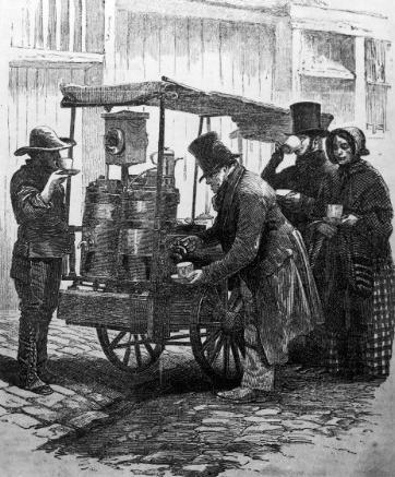 18世纪:咖啡可让人长时间工作。1730年在伦敦,茶取代咖啡,成为人们的日常饮品。在1773年波士顿倾茶事件把喝茶定性为“不爱国的行为”之前,美洲殖民地的居民一直对茶偏爱有加。但自倾茶事件之后,咖啡店越来越多。显著的提神效果使人们相信,喝咖啡可以让殖民地的居民们工作更久。