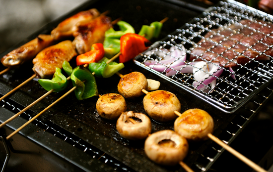烧烤,是指鱼肉类或蔬菜串在铁架上,以碳火或高温炉具通过适度的高温,使材料表面生成硬膜呈金黄色,令香味包含其中,制成带有独特焦香味的料理。可分直火烧烤或间火烧烤两种,直火烤是将食物置于火上直接烧
