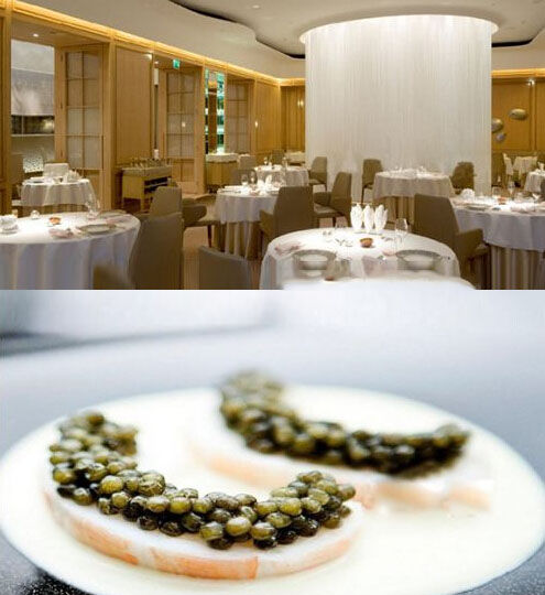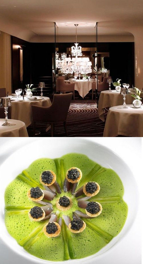 这家餐厅位于英国伦敦海德公园旁边的多尔切斯特(The Dorchester)酒店,是法国名厨阿兰·杜卡斯(Alain Ducasse)名下的众多高级餐厅之一。这家餐厅在2011年被授予米其林三星,从而使阿兰·杜卡斯集团所属餐厅拥有的米其林星总数达到了15颗。阿兰·杜卡斯本人现在已经不亲自主厨了,但他的美食理念还是深刻地影响着他的每一家餐厅。餐厅需提前一个月开始预订,而周末的位置更加难定。