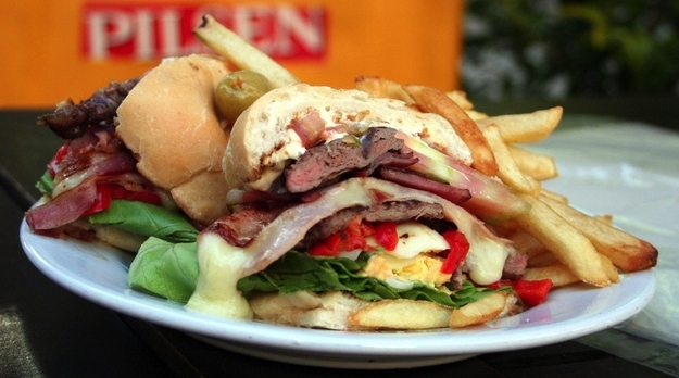 Chivito是小羊羔的意思,但这款三明治的原料却是碎牛肉,拌上意大利干酪、西红柿、蛋黄酱、黑橄榄或青橄榄,通常还会加上培根、煎蛋或水煮蛋、和火腿。基本上就是一堆松散的食料夹在两片面包之间。可以一试。
