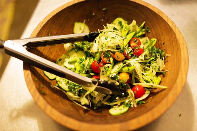 博古斯盘中餐--意式油渍贝柱搭配香草菠菜沙