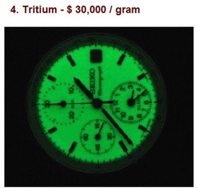 钚(一种放射性元素,是原子能工业的重要原料,可作为核燃料和核武器的裂变剂)——4000美元/克