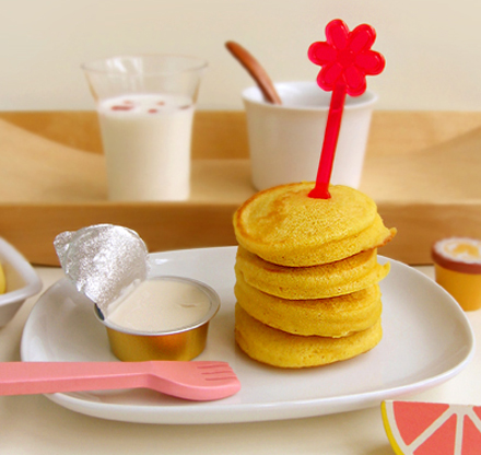 3.平底锅倒入少许油,倒入鸡蛋玉米糊,摊成圆饼。
