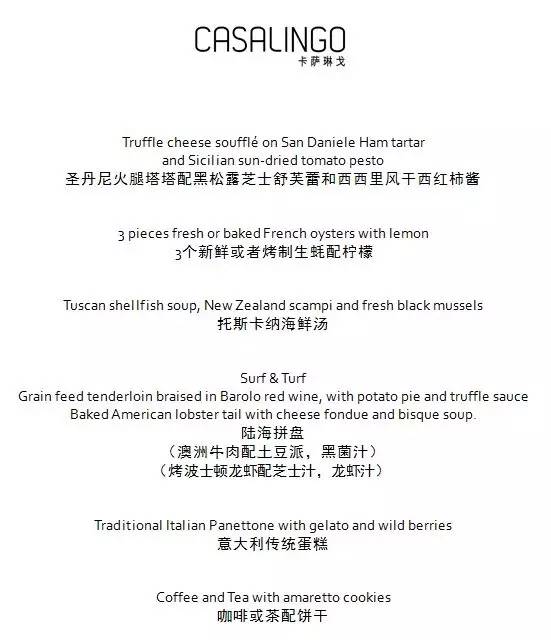 意大利主厨精心绘制意式传统圣诞晚餐,在意大利风情的卡萨琳戈餐厅,抒写美食与美酒的激情碰撞。
