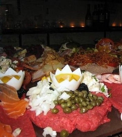 丹麦人爱吃鸡蛋糕与甜点,做出了风靡世界的丹麦奶酥。丹麦气候寒冷,大地是个天然的冷冻箱,肉类无腐败之虞,可以拿来生吃。丹麦最有名的国菜就是用生牛肉剁成泥状,上面放一个生蛋黄,与肉搅匀了用汤匙挖下来一口一口吃掉,这道菜叫“魔鬼太阳”,脾胃虚弱的人看到这道菜可能三日作呕,但是丹麦人吃起这道大餐却是食之如甘饴。