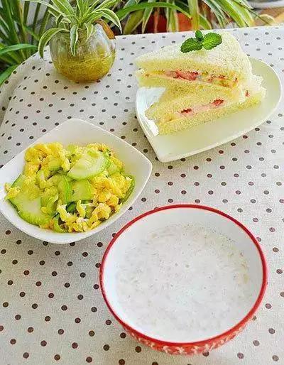 13、水果三明治+青瓜炒蛋+牛奶炒米