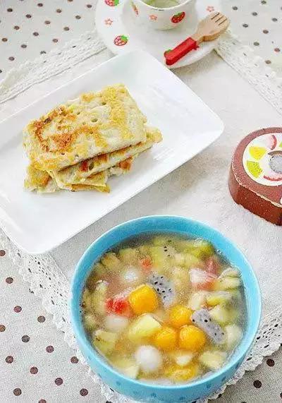 15、芋头饼+水果小圆子。