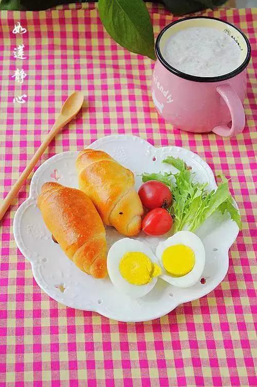 22、黄油卷+白煮蛋+圣女果+苦菊+牛奶麦片