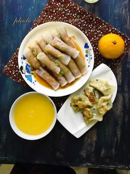 36、萝卜牛肉卷+玉米粥+煎饺+橙