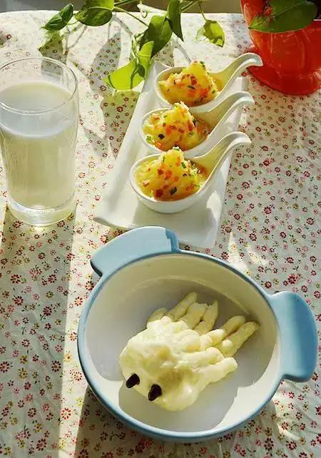 45、高汤土豆泥+章鱼馒头+牛奶