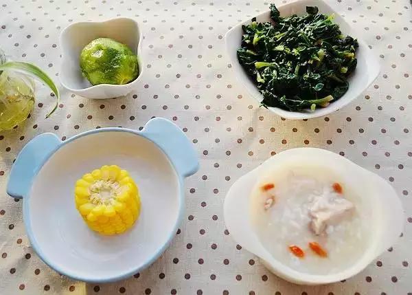 47、萝卜排骨粥+玉米+炒小菠菜+猕猴桃