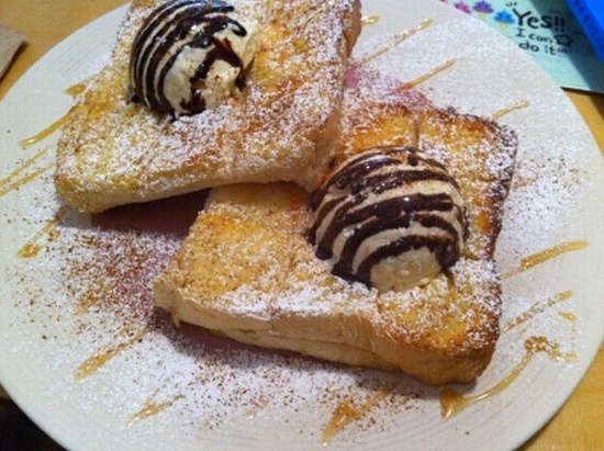 面包上加个冰激凌球超好吃啊,最好是硬一点的面包!