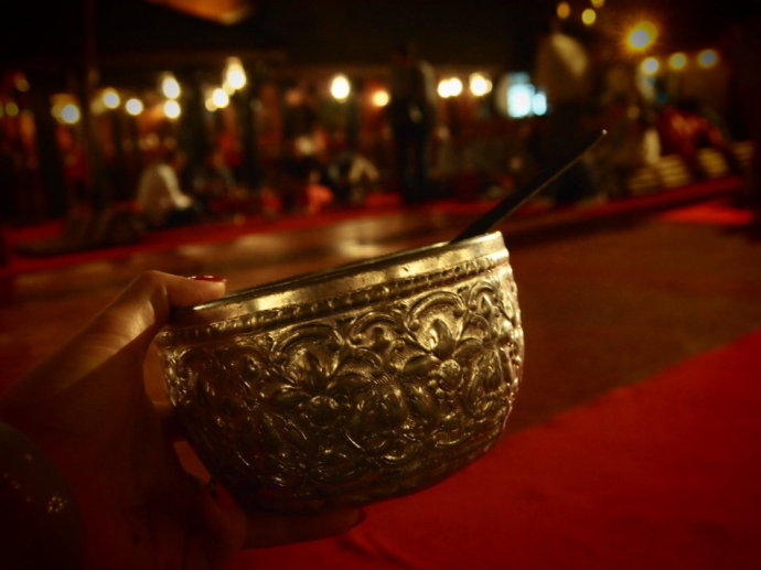 清迈康托克帝王餐秀( khum khantoke),以前是泰国国王的“御宴”,现在改为高级餐厅。Khan意为碗,Tok为矮的圆台。进食的人必须脱去鞋子,盘膝席地围坐。只提供晚餐,晚餐有8道菜,以咖喱和酸辣味为主,是典型的泰北风味。进餐时有民间舞蹈和音乐助兴,气氛愉快。这种泰北兰纳时期宫廷内的用餐形式传承到了现代,成了独具一格的民俗表演。中间演奏区和表演区有泰国传统音乐和民间舞蹈助兴。吃是其次,看秀享受是真,颇有点古代君臣共乐的情怀。