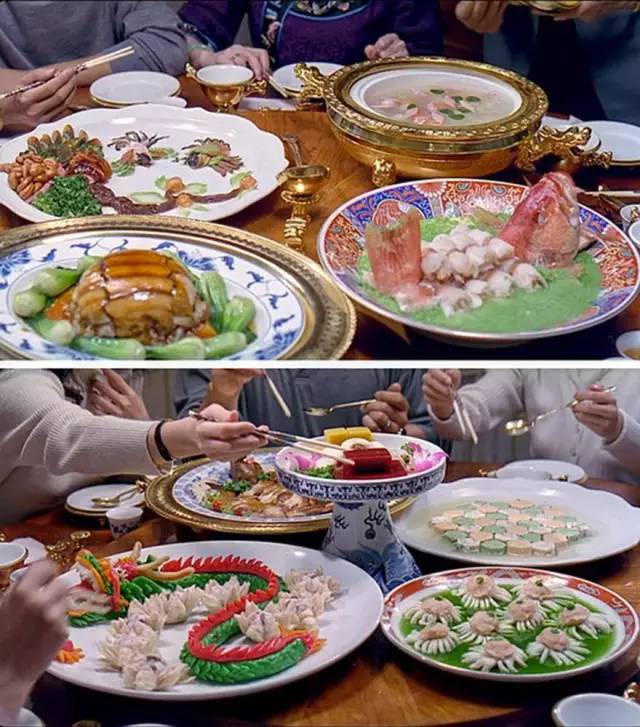 就算是豆瓣分数高达8.9、口碑好到爆的《饮食男女》。电影中但凡出现家庭大聚会,桌面上摆出来的一道道盘子,好像不大不足以压桌面,不精雕细琢不足以撑场面。且不管吃不吃得完,也不管口感好不好,必须先讲究刀工,讲究色泽,讲究大鱼大肉整鸭整鱼,仿佛这样就代表团团圆圆和和美美。