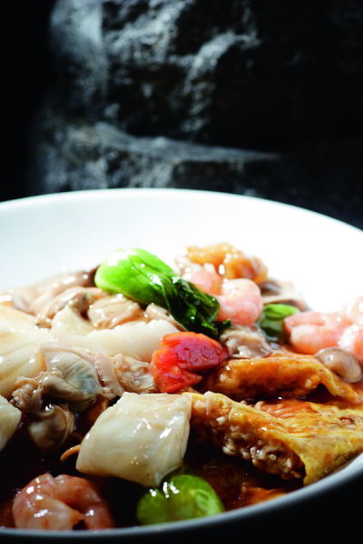 高档餐厅里的两面黄也有改良得不错的,一道叫做“海味两面黄”的,在面里面加了鸡蛋,然后煎烘出来的,切成一片片,吃起来方便,上面浇头里有文蛤肉、黄喉、鳕鱼等,鲜味更甚传统。