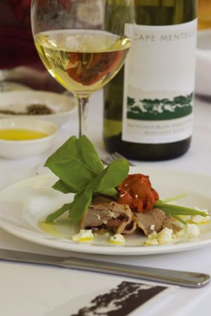 几道酒尝来,感觉丰泉这站的主角是那款曼达岬夏多内白葡萄酒2008。其实,除了标志性的卡本内苏维浓,玛格丽特河也以世界级的夏多内白葡萄酒而出名。这款就颇具代表:带着白桃,青柠的香味结合了矿物味道,有精致的质地和悠长干净的回味,柚子和细腻的生姜味也若隐若现。这样款富有矿物气息的澳大利亚白葡萄酒,让人依稀找到勃艮第白酒的感觉。眼,它搭配了海鲈鱼卡尔帕乔出场,TIM LOVETT和厨师还特意为它设计了淋有热情果酱汁的黄瓜西红柿色拉。这是睛之笔,热情果酱汁把鲈鱼的鲜甜、蔬果的清新调动到了个更高水准,然后又起激发出了这款夏多内2008最好的特质――口鼻之间很清晰地找到了酒食之间相互提的美味感受。