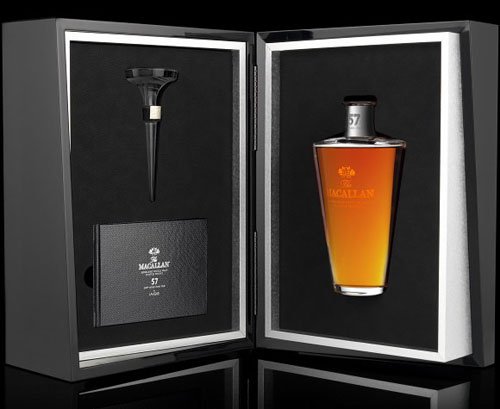 经由法国传奇玻璃制厂Lalique精心设计麦卡伦独家酒瓶,售价美金15000元,非凡俐落的造型内含57年珍稀单一纯麦威士忌,限量400瓶。
